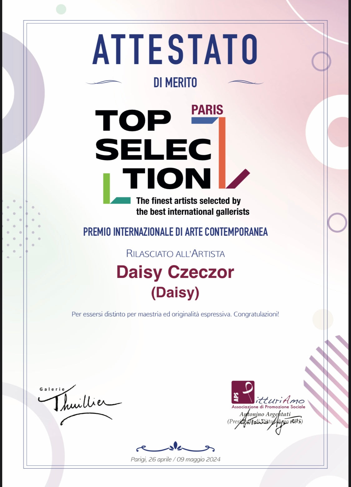 Die Teilnahme an der Top Selection Paris 2024 war für mich eine ganz besondere Etappe meiner künstlerischen Reise. In einer der bedeutendsten Kunststädte der Welt ausgestellt zu sein, war eine wertvolle und schöne Erfahrung, die mich inspiriert und bestärkt hat, meinen eigenen Weg als Künstlerin weiterzugehen.