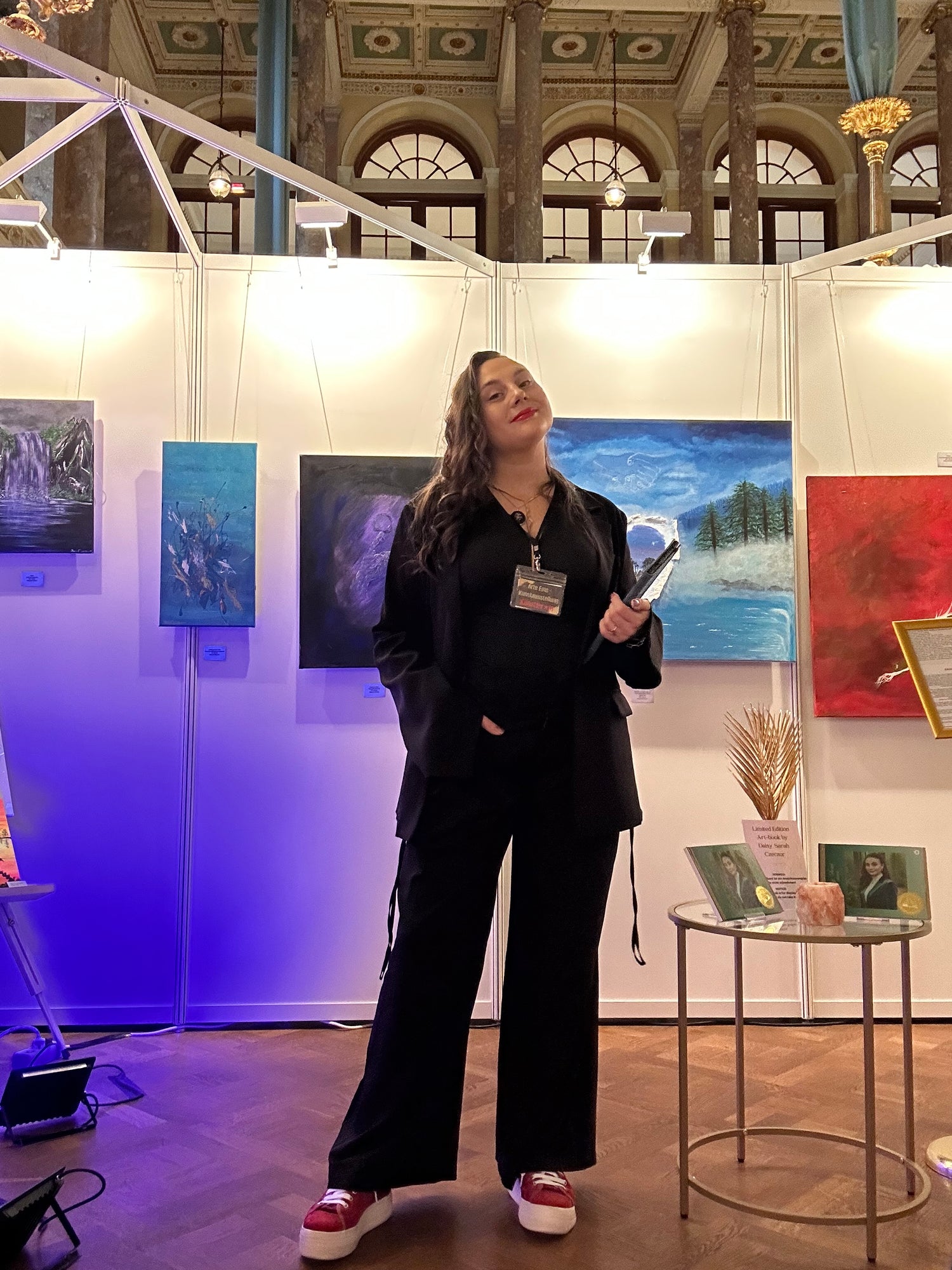 Jedes Detail war mit viel Herzblut geplant: die sorgfältige Hängung der Bilder, die harmonische Kombination der Farben, selbst meine Outfits waren auf die einzelnen Ausstellungstage abgestimmt. Ich habe nicht nur meine Kunst gezeigt, sondern eine ganze Welt erschaffen, die Besucherinnen und Besucher vollständig eintauchen ließ – vom Design der Werbung bis hin zur Organisation und Präsentation vor Ort.