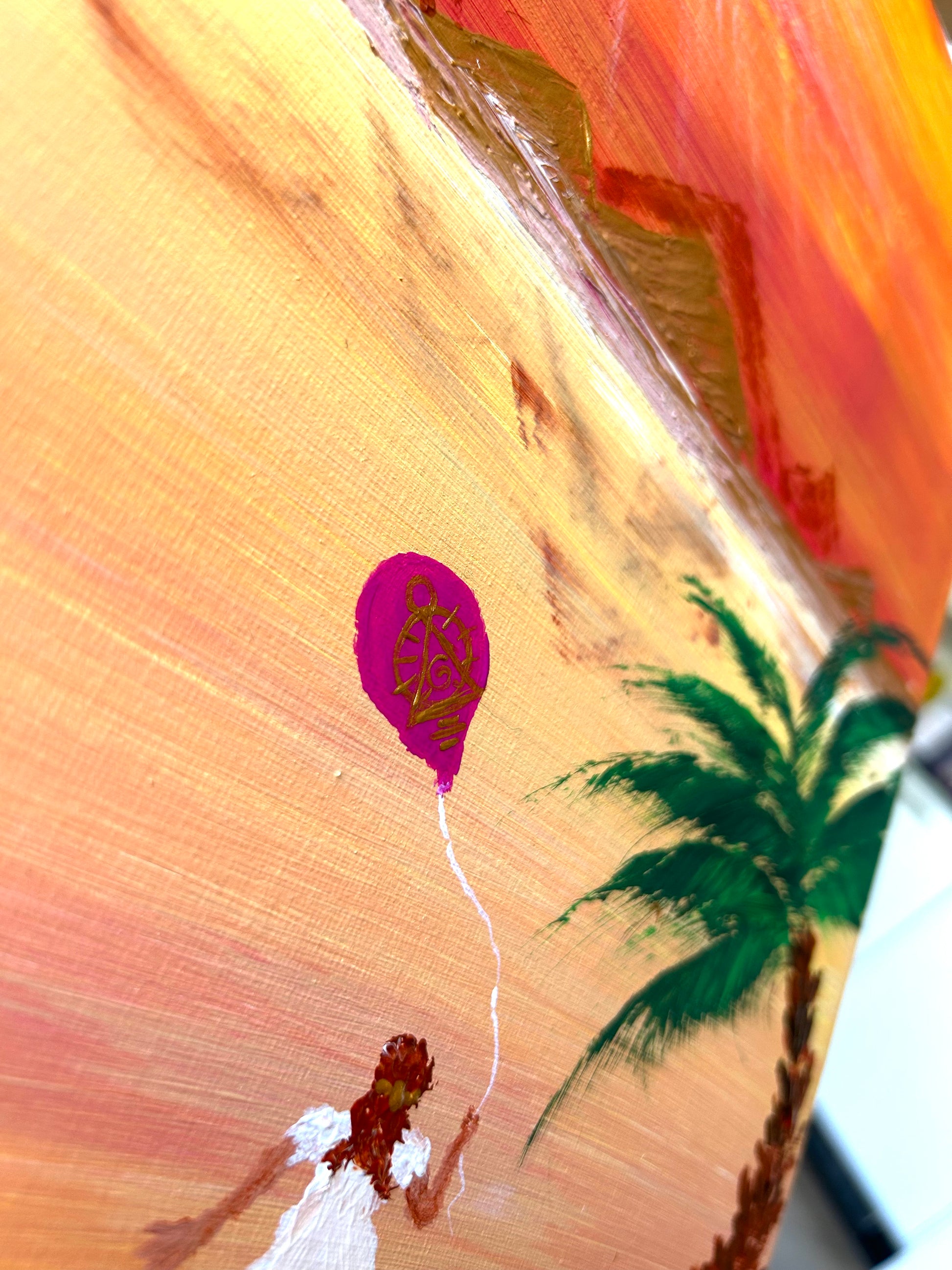 Das auf dem Ballon gezeichnete Zeichen ist ein persönliches Symbol für Schutz und spirituelle Führung. Es erinnert daran, dass wir nie allein sind, selbst wenn der Weg vor uns fremd erscheint.