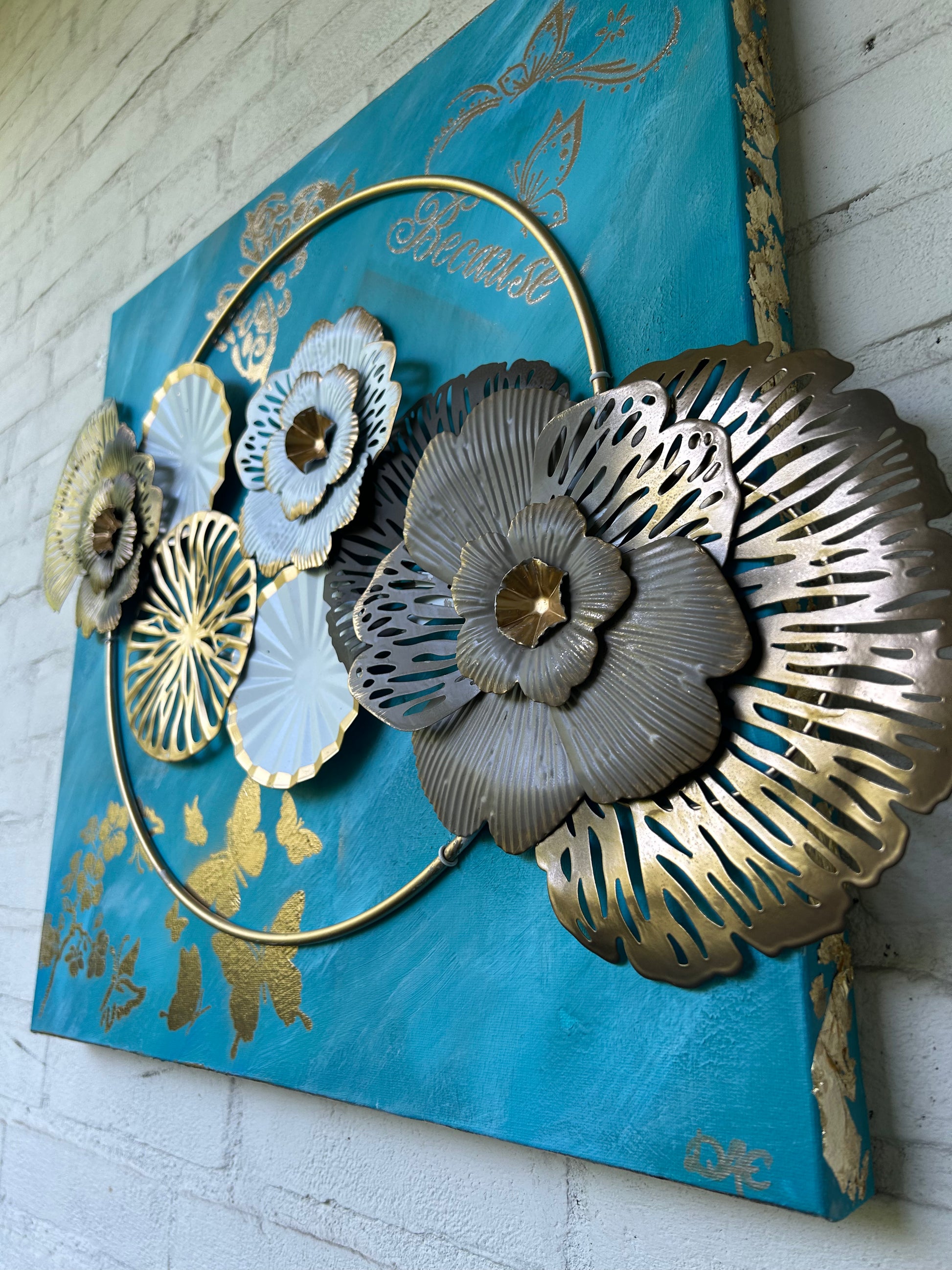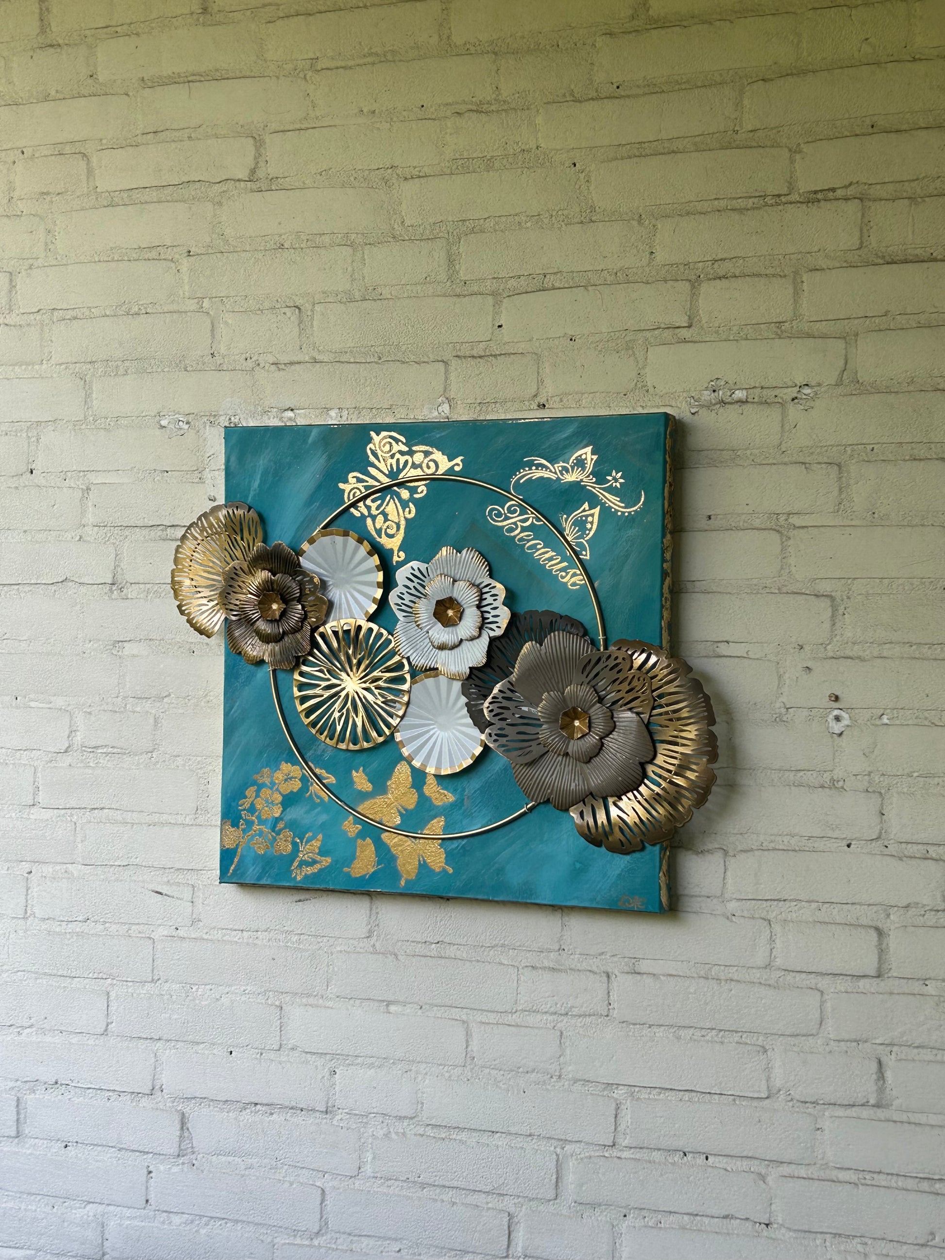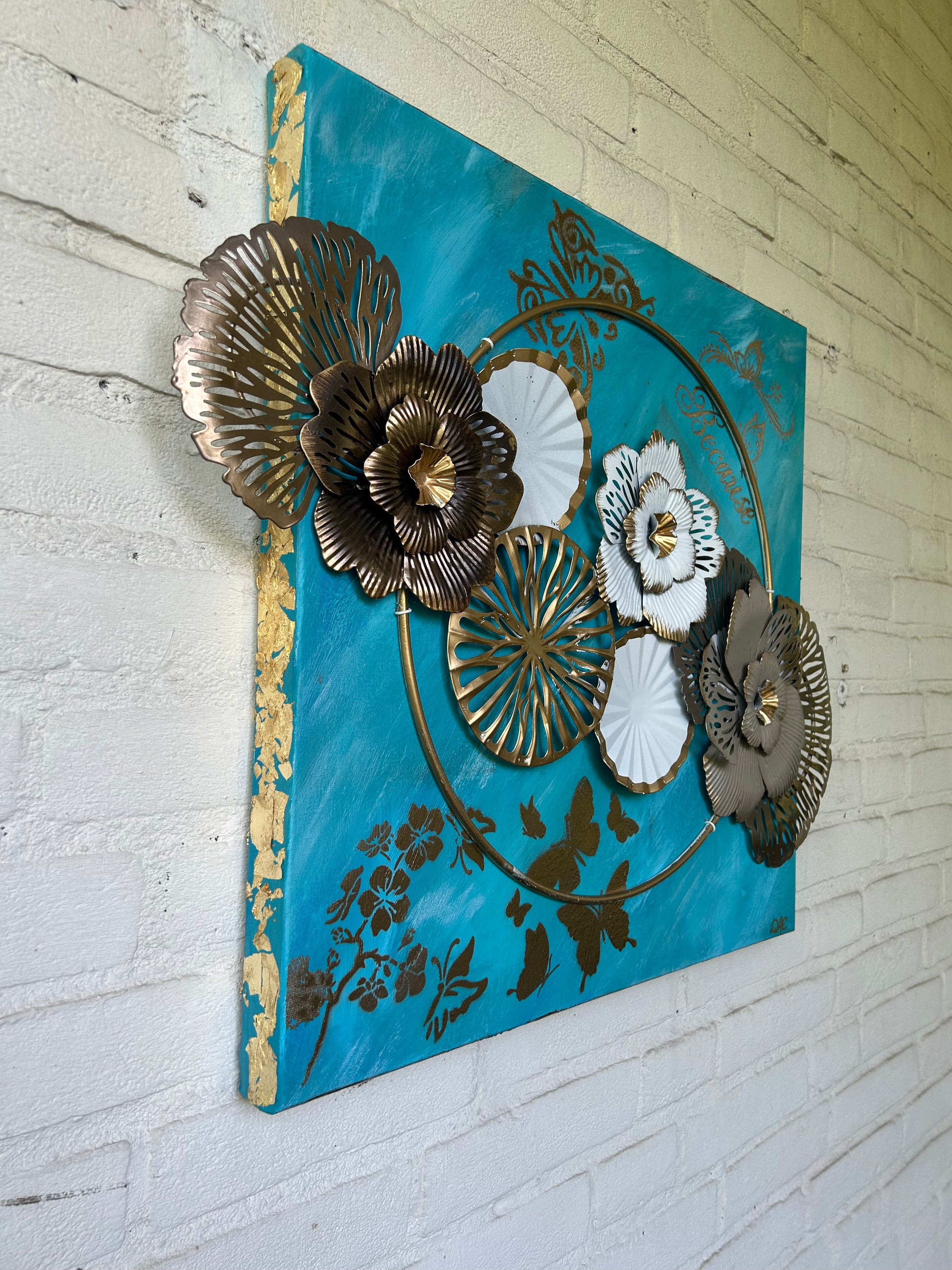 Emerging Serenity - Acryl & Metall blühten auf Leinwand 50 x 50 x 3 cm, 3D Textur und Gold Elemente - by DaisyArtCzeczor