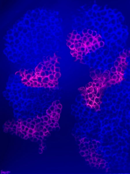 Besonders eindrucksvoll entfaltet das Bild seine Wirkung im Schwarzlicht: Die Neonfarben beginnen intensiv zu leuchten und erzeugen eine fast magische Atmosphäre. In modernen Räumen mit dunklen Wänden oder schwarzen Möbeln kommt dieses Leuchten besonders gut zur Geltung und verwandelt den Raum in ein spannendes, lebendiges Kunst-Erlebnis.
