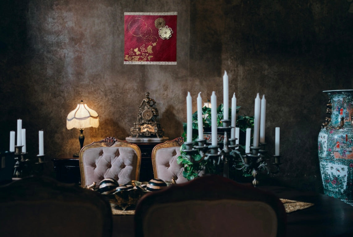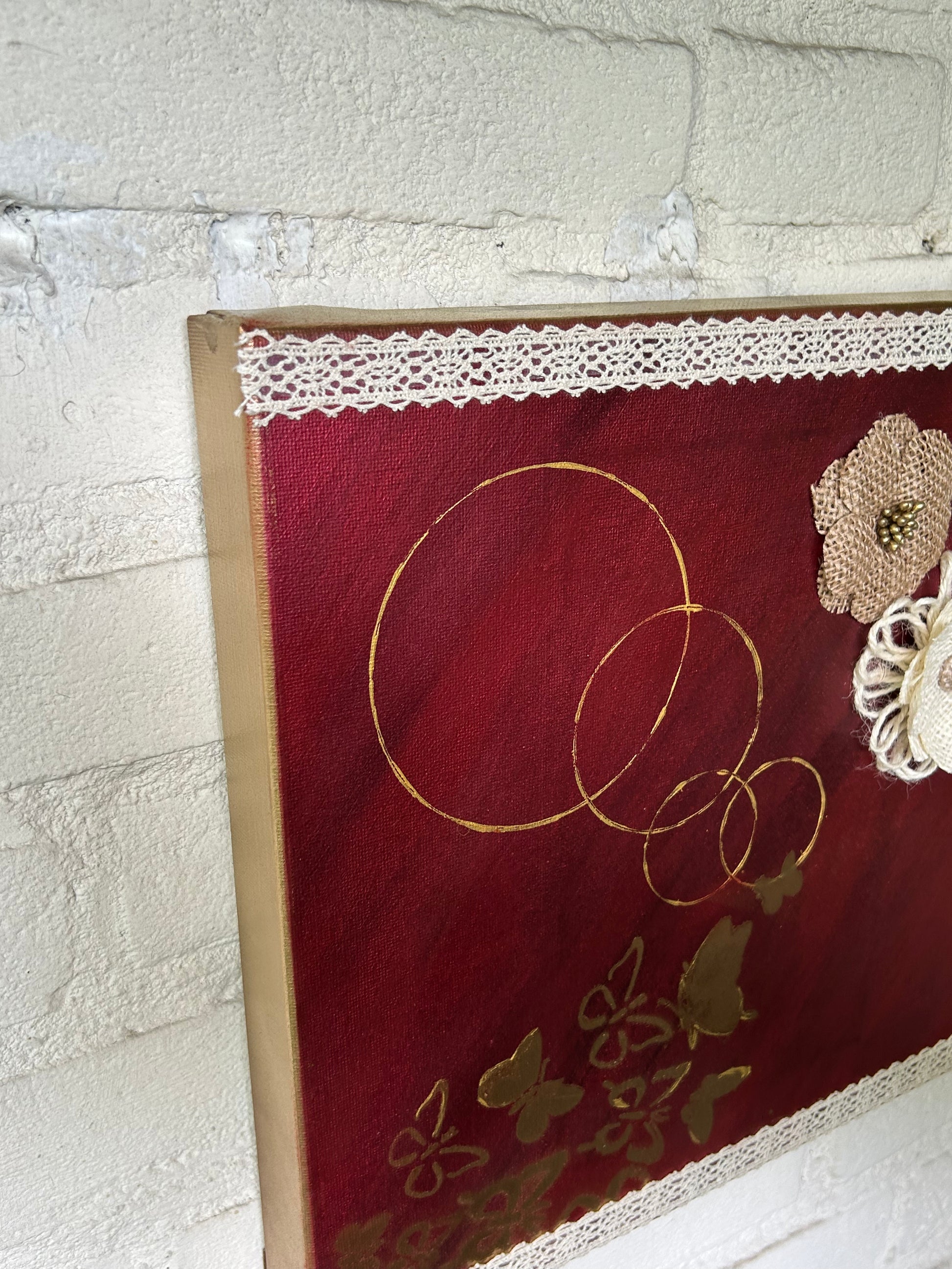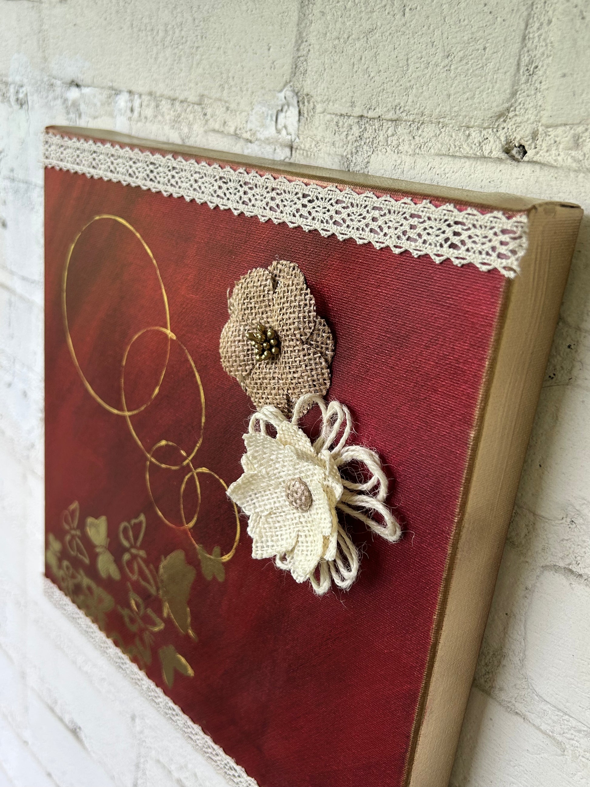 Wurzeln der Verwandlung - 30 x 30 x 4 cm Acryl & Mixed Media auf Leinwand (Keilrahmen), Epoxidhartz, Spitze & eingenähte Stoffblühten - by DaisyArtCzeczor